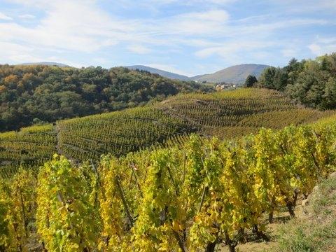 TWO GOOD SITES AT CONDRIEU: THE CÔTE CHÂTILLON (foreground) with LA RONCHARDE (background). The best Condrieu 2014s are graceful, intricate and enjoyably deep. The 2015s are dense, thickly coated